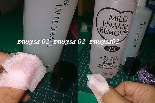 首先,卸有亮片的指甲油一定要先敷一下(大約5秒~7秒)軟化指甲油但不宜太久以免乾掉更難卸!